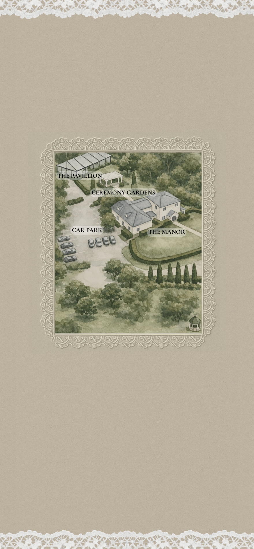 We kindly ask that guests make their way on foot through the car park entrance to the ceremony gardens, unless otherwise advised on the day.